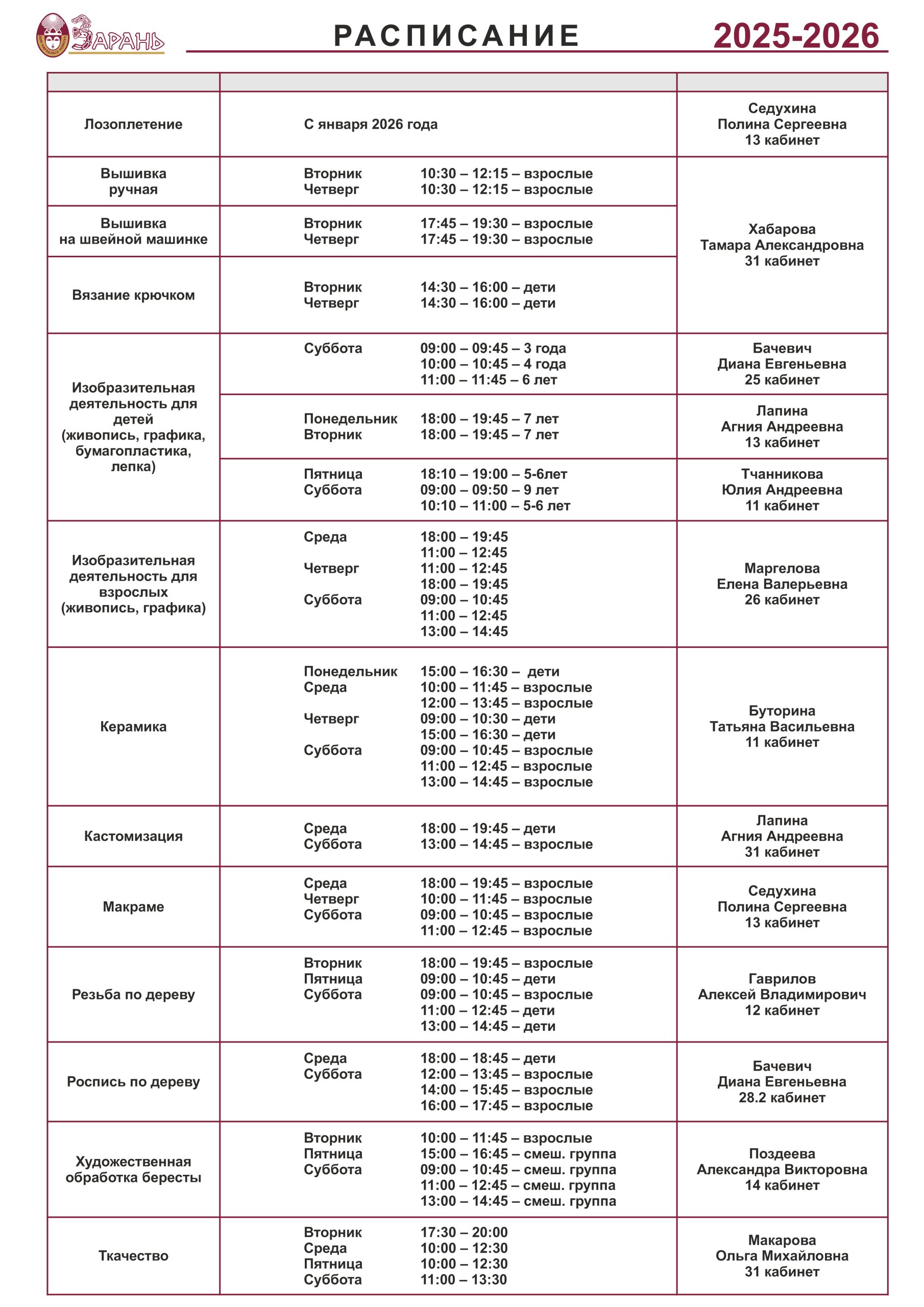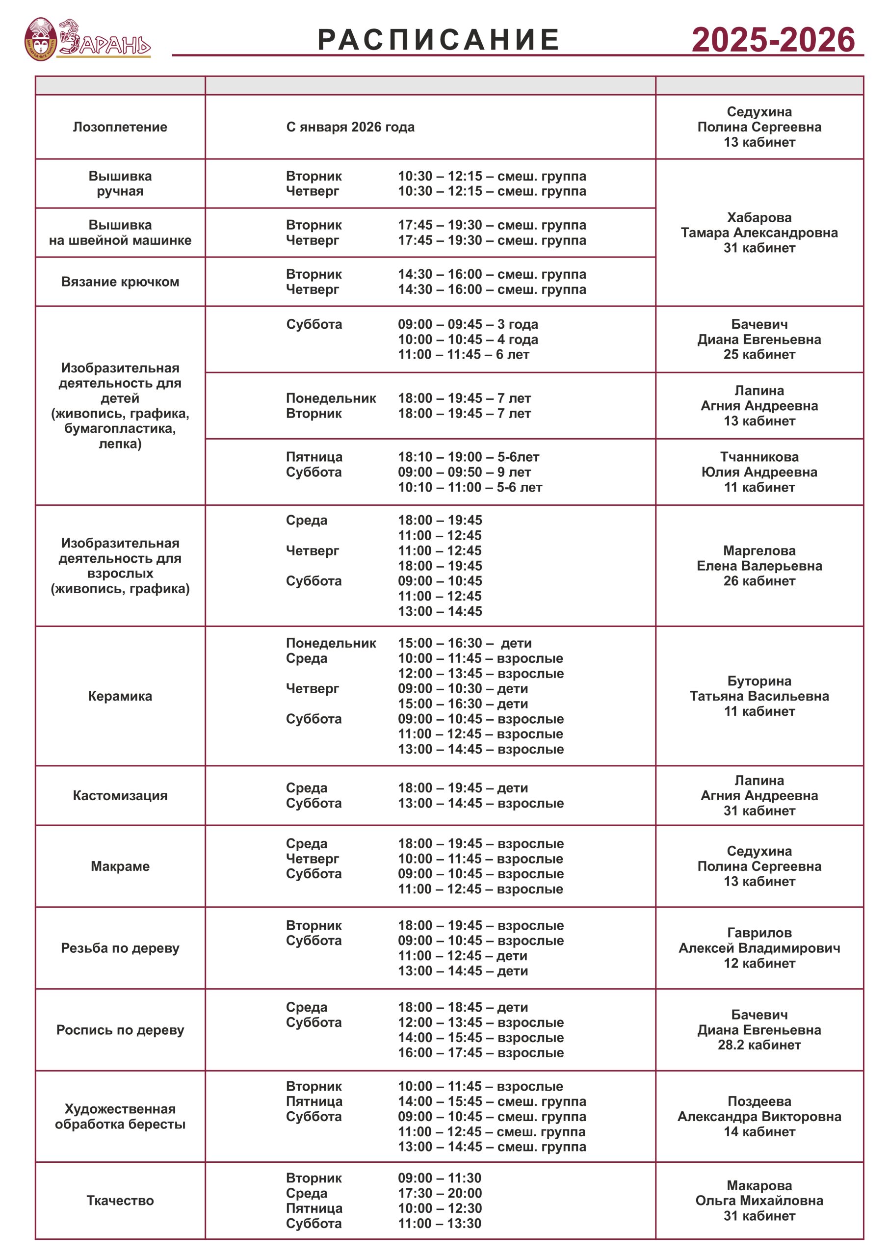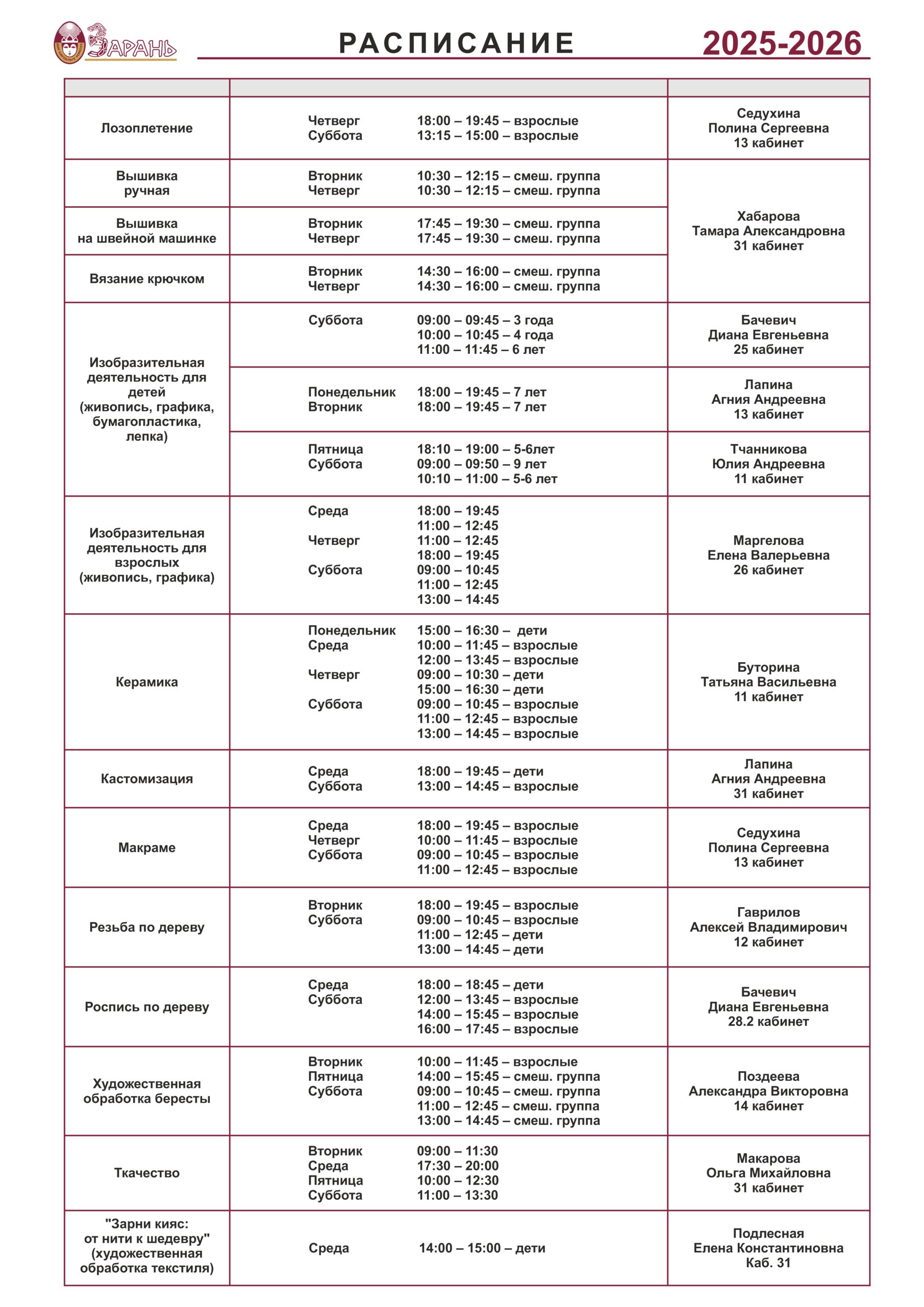 РАСПИСАНИЕ